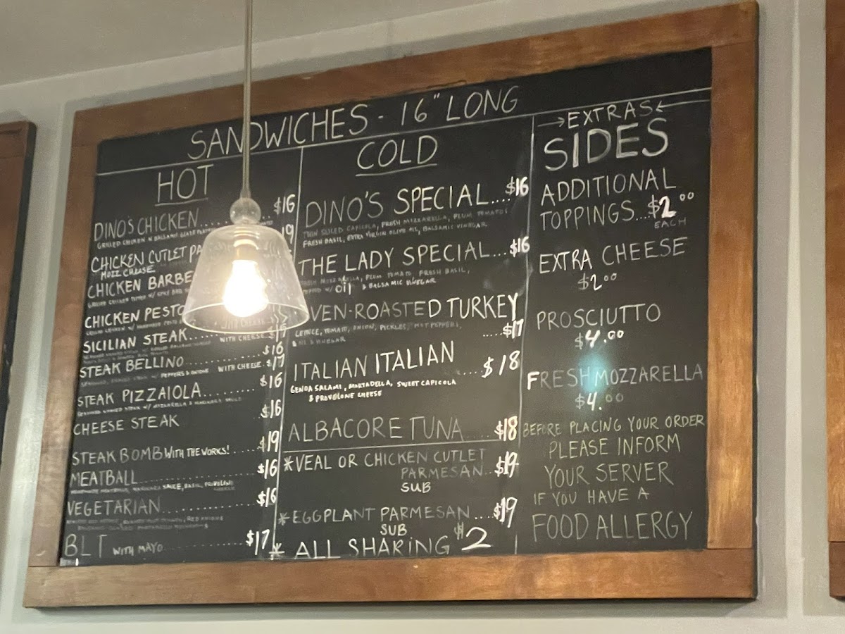 16 inches long on fresh baked French bread. Fresh and white albacore tuna mixed with mayonnaise. Everything includes: lettuce, tomato, pickle, onion, oil, vinegar and hot pepper relish